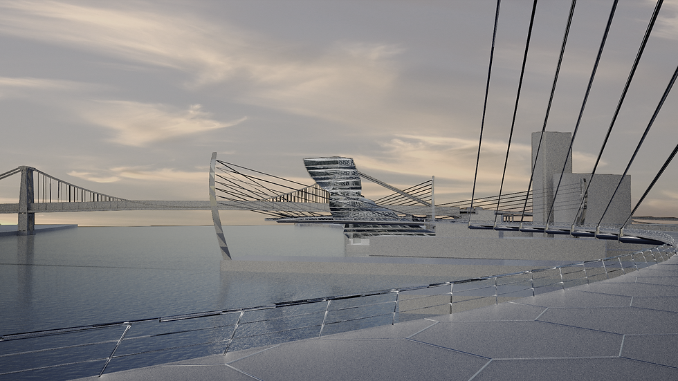 This project aims to create a bridge, both physical and literal, between the public and the private aspect of the Navy Yard and to the understanding of materials science. A pedestrian bridge constructed using the latest smart materials and visually inspired by the unique molecular structure of carbon provides a link in the ongoing NYC Green-way project as well as an invitation to observe the exciting research taking place within the labs.